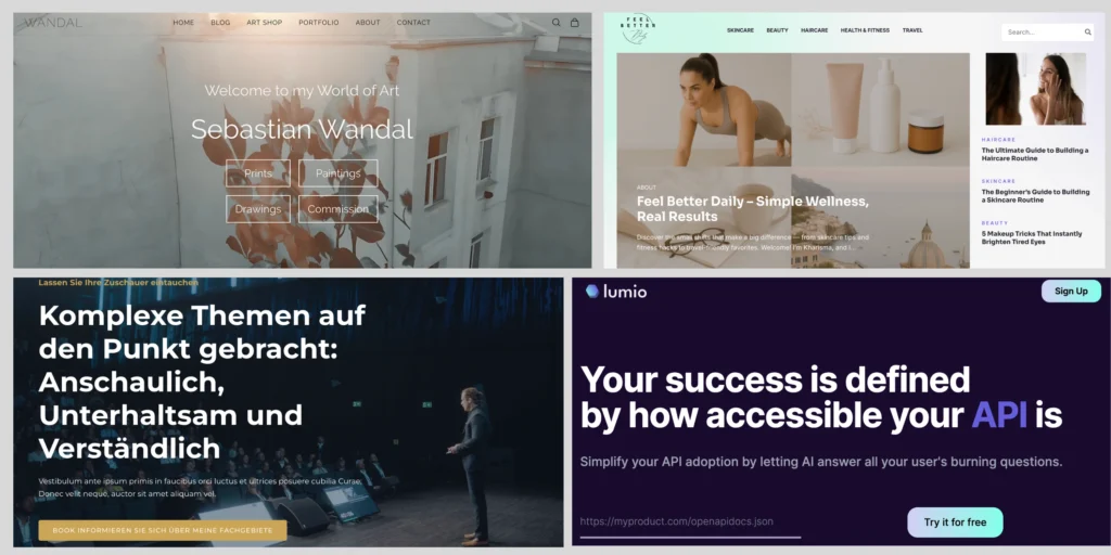 • Wix – for ultra-modern, minimalistic sites with smooth animations and next-gen aesthetics.