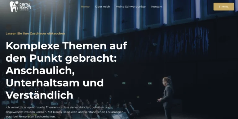 With the website dentalkeynote.com, a professional digital presence was created to showcase his expertise and make him easily accessible for event organizers. At the same time, the website functions as a central hub for future inquiries and speaker references.